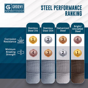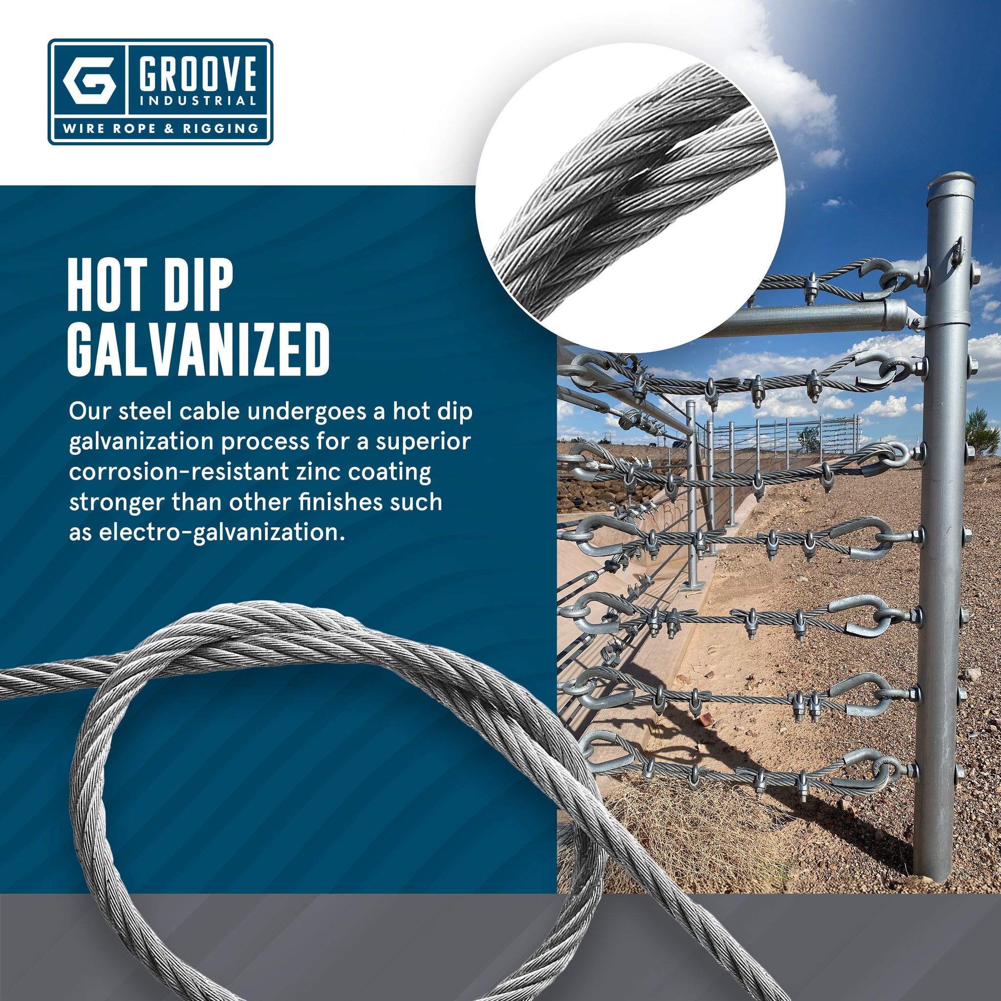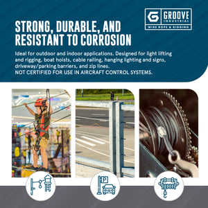 GROOVE INDUSTRIAL IS NOT RESPONSIBLE FOR THE USE OR MISUSE OF OUR PRODUCTS. WIRE ROPE PRODUCTS AND OTHER RELATED HARDWARE WILL BREAK IF ABUSED, MISUSED, OR OVERUSED. REGULAR INSPECTION AND MAINTENANCE ARE NECESSARY. CONSULT INDUSTRY RECOMMENDATIONS AND APPLICABLE CODES BEFORE USING. ALL SALES ARE MADE WITH THE AGREEMENT THAT THE BUYER AND ANY END USER UNDERSTAND ALL SAFETY FACTORS INVOLVED IN THE USE OF THE PRODUCTS, INCLUDING- BUT NOT LIMITED TO- THE WORKING LOAD LIMIT AND BREAKING STRENGTH APPLICABLE TO THE PRODUCTS, AND WILL TAKE ALL STEPS NECESSARY TO PROPERLY USE THE PRODUCTS. GROOVE INDUSTRIAL DISCLAIMS ANY RESPONSIBILITY OR LIABILITY FOR OR IN CONNECTION WITH, THE USE OR MISUSE OF THE PRODUCT, WE SELL.